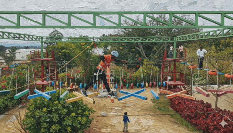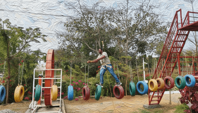 A continuous circular rope challenge designed to push your coordination and endurance to the limit. There’s no turning back once you start this rhythmic, gravity-defying circuit.