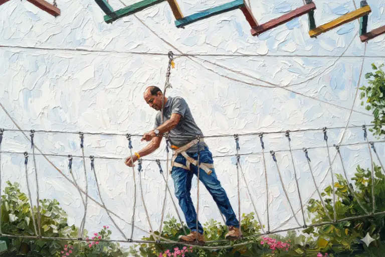 The ultimate tightrope experience. Dare to balance across a narrow, high-tension rope where your core strength and composure are the only things keeping you upright.